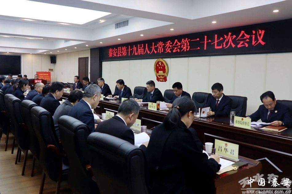 3月21日,秦安縣人大常委會主任馬順祥主持召開秦安縣第十九屆人大常委會第二十七次會議?h人大常委會副主任及委員出席會議。縣委常委、縣政府副縣長楊濤,縣法院院長、檢察院檢察長、縣監(jiān)察委員會、政府辦、公安局、司法局、應(yīng)急管理局等單位負責(zé)人,部分鎮(zhèn)人大主席、縣人大代表列席會議。