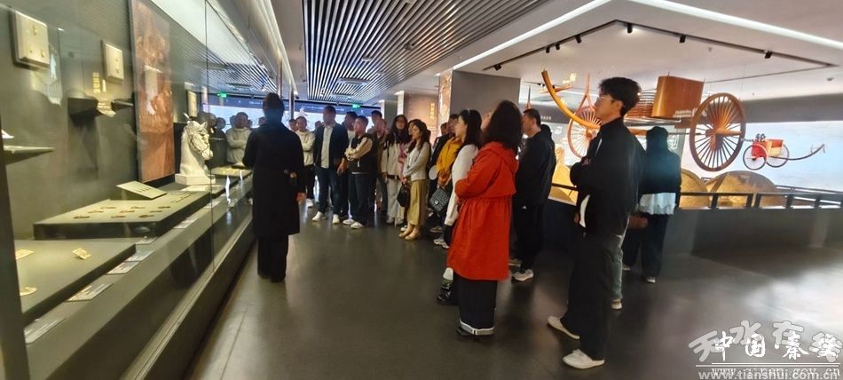 上午,青年們走進張家川縣馬家塬車輿博物館。館內豐富的文物與翔實的史料,生動展現(xiàn)了古代車輿文化的發(fā)展脈絡。青年們跟隨著講解員的腳步,認真聆聽每一件展品背后的歷史背景和文化內涵,不時駐足凝視,被古代精湛的工藝和獨特的設計所震撼。這些車輿不僅是交通工具的演變見證,更是古代社會制度、禮儀文化的生動體現(xiàn)。