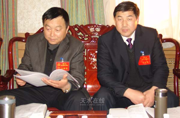 圖中左為清水縣委書記雷鳴(配圖:天水在線)