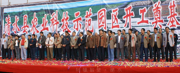。ㄇ逅h外宣辦 劉海仙 楊兆康)9月23日,清水縣隆重舉行農(nóng)業(yè)園區(qū)建設(shè)開(kāi)工奠基儀式。省扶貧辦副主任張森,天水市委常委、副市長(zhǎng)柴金祥,市委常委、組織部部長(zhǎng)張應(yīng)華等省市領(lǐng)導(dǎo)同清水縣四大組織領(lǐng)導(dǎo),各鄉(xiāng)鎮(zhèn)、縣直各單位副科級(jí)以上干部及紅堡鎮(zhèn)群眾3000多人參加了奠基儀式。