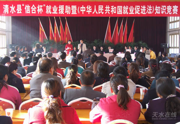 (清水縣委對外宣傳辦公室 劉海仙 楊兆康 馬健康) 為了更進(jìn)一步提高公民的法律意識,推動就業(yè)工作,日前,由清水縣勞動和社會保障局、縣信用聯(lián)社、縣勞動就業(yè)培訓(xùn)中心聯(lián)合舉辦了清水縣“信合杯”就業(yè)援助暨《中華人民共和國就業(yè)促進(jìn)法》知識競賽。