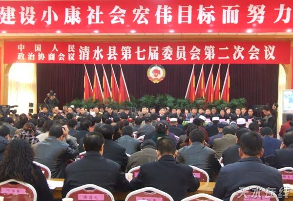 。ㄇ逅h委對(duì)外宣傳辦公室 劉海仙 楊兆康)2008年2月16日下午4時(shí),中國(guó)人民政治協(xié)商會(huì)議清水縣第七屆委員會(huì)第二次會(huì)議在政府招待所北二樓會(huì)議室隆重開幕。