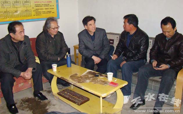 當天下午,吳治中書記還與天水市歌舞團領(lǐng)導班子成員楊亦功、劉濤、曹文成、李尊智一起和當?shù)剜l(xiāng)黨委、政府、村黨支部、村委會領(lǐng)導班子及聯(lián)系戶座談,認真聽取了村班子建設(shè)和村組基本情況,詳細了解董灣村基礎(chǔ)設(shè)施建設(shè)、主導產(chǎn)業(yè)發(fā)展、農(nóng)民收入、惠農(nóng)資金落實等情況,進一步了解他們生產(chǎn)生活中遇到的困難。