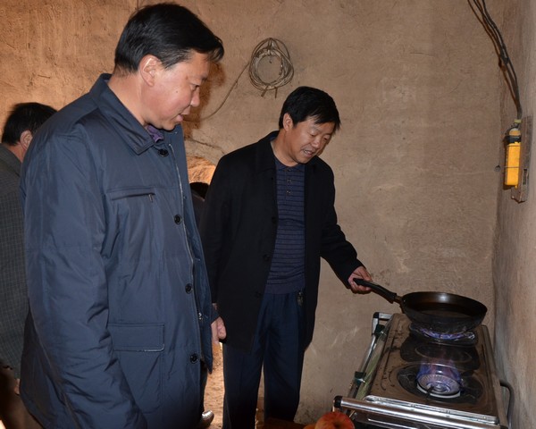 (在黃門鄉(xiāng)長谷村查看農(nóng)戶沼氣使用情況)