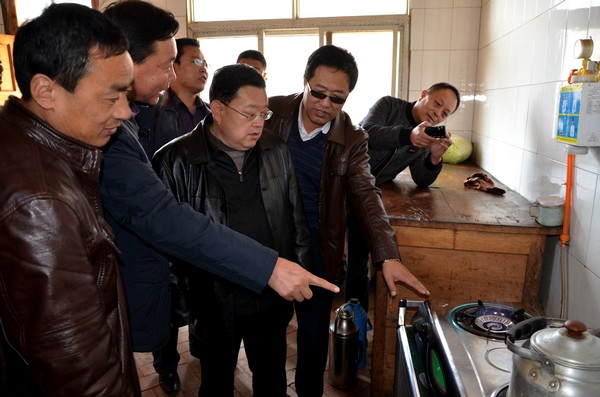 (在紅堡鎮(zhèn)安坪村查看沼氣使用情況)