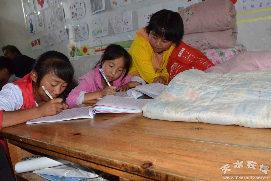 (在豐望鄉(xiāng)槐楊村黑莊里自然村受災(zāi)群眾臨時安置點,孩子們以學(xué)校為家)