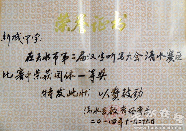 清水縣新城鄉(xiāng)中學(xué)校長(zhǎng)魏貴增說(shuō),新城鄉(xiāng)中學(xué)平時(shí)對(duì)語(yǔ)文教學(xué)特別重視,尤其是語(yǔ)文老師,對(duì)學(xué)生的要求特別嚴(yán)格,要求書寫漢字一筆一畫,認(rèn)真輔導(dǎo),因此在天水市第二屆漢字聽寫大會(huì)中最終獲得了一等獎(jiǎng)。