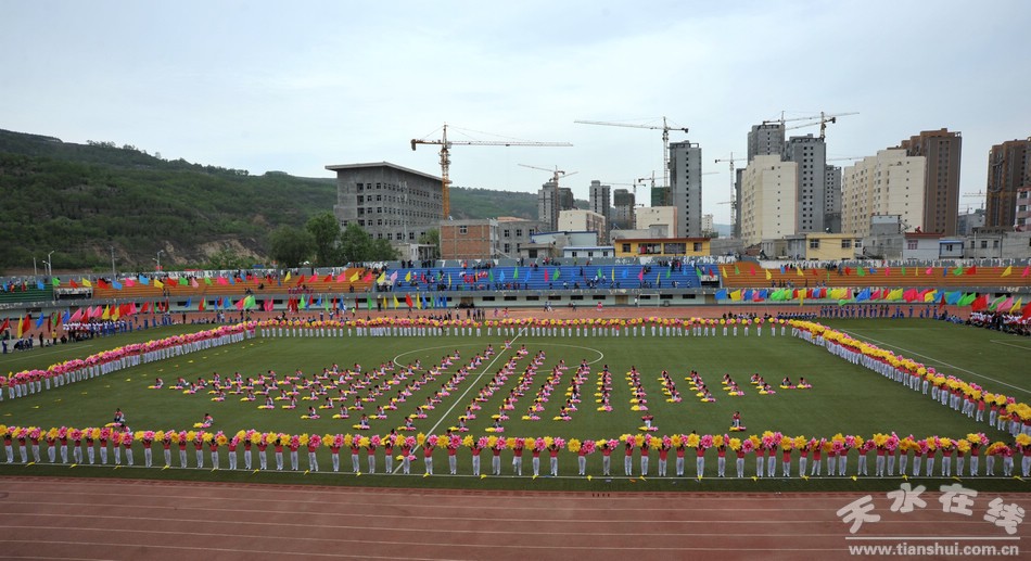 彩排現(xiàn)場,伴著歡快的旋律,踏著動感的節(jié)拍,數(shù)百名學子齊聚體育場,帶來氣勢恢弘、催人奮進的大型團體操表演。隨著學生手中彩扇、花環(huán)、彩球的抖動變換,時而變成紅色,時而變成黃色或藍色,交相輝映,熠熠生輝。一幅幅寓意深刻圖案造型在學生的跑動不斷呈現(xiàn),充分展現(xiàn)了清水學子們陽光自信的精神風貌和朝氣蓬勃的青春活力。