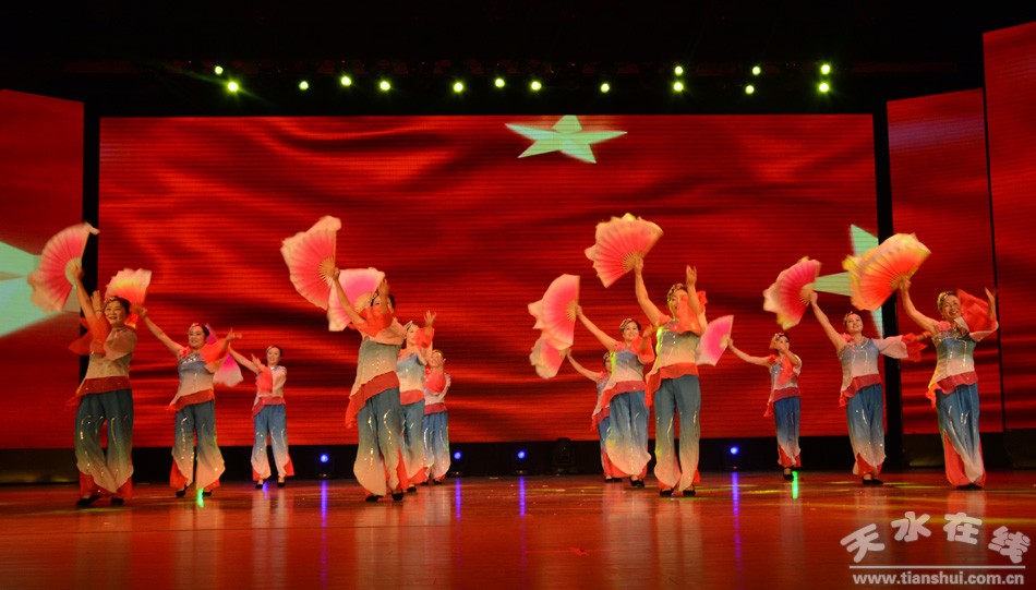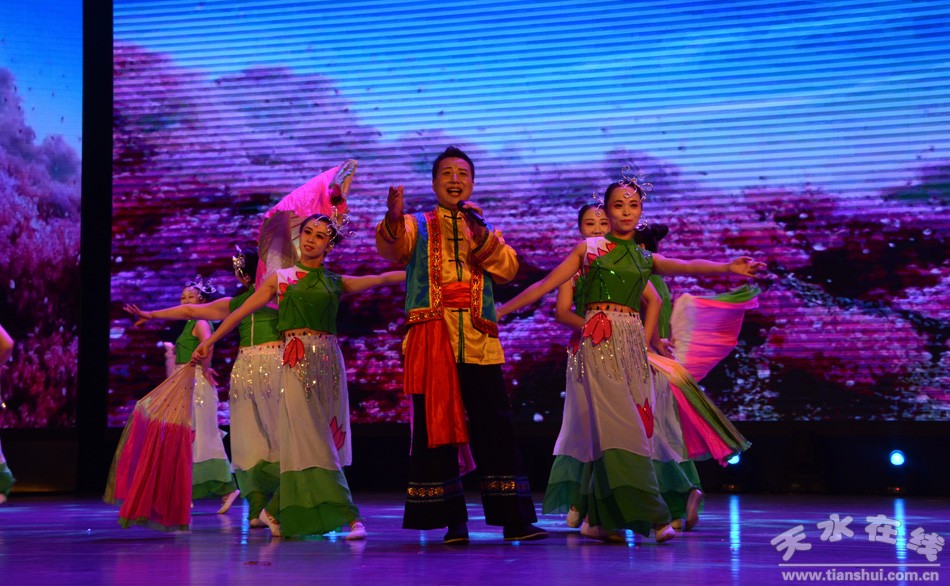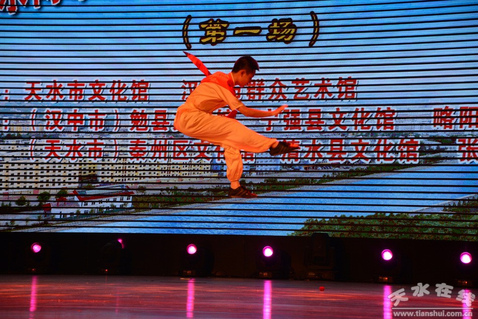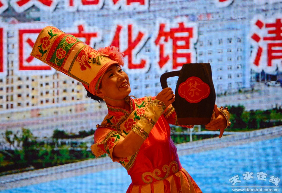 晚八點(diǎn)整,文藝演出正式開(kāi)始,由清水縣文化館表演的舞蹈《軒轅鼓娃》拉開(kāi)了演出序幕,隨后武術(shù)《李廣雄風(fēng)》、舞蹈《旱蓮賦》、表演唱《月下情思》、歌伴舞《請(qǐng)喝一碗罐罐茶》、雜!肚逅救怂印、川劇絕活《變臉》等來(lái)自兩市六縣區(qū)14個(gè)節(jié)目輪番上演,現(xiàn)場(chǎng)高潮迭起,掌聲、喝彩聲不絕于耳。