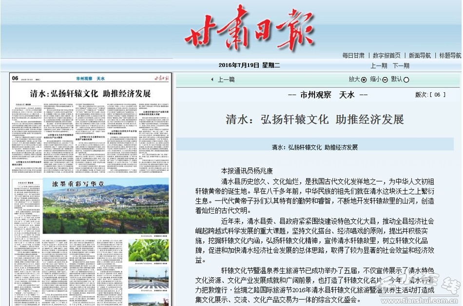 【甘肅日?qǐng)?bào)】清水:濃墨重彩寫華章
