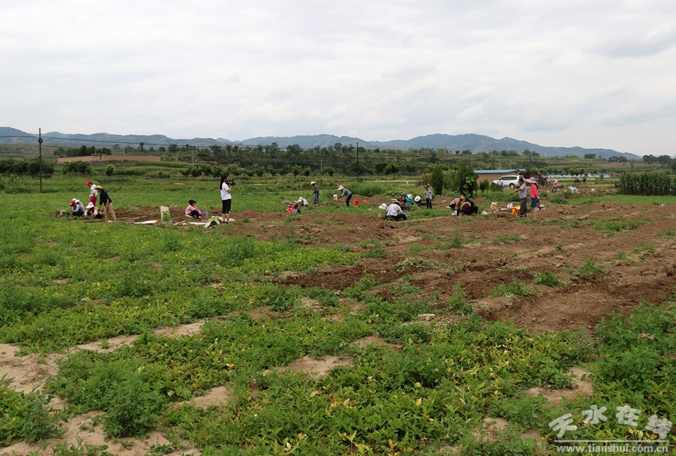 近日,筆者在清水縣泰山廟塬半夏種植基地里看到,綠油油的田地里到處是人群在忙碌的采收半夏。