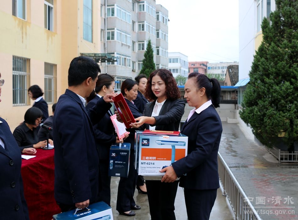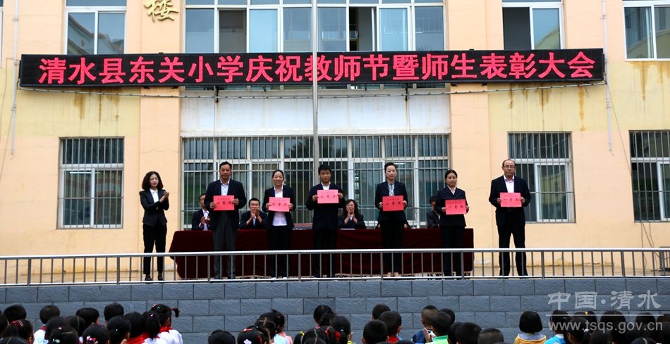 9月9日上午,清水縣東關(guān)小學(xué)舉行了慶祝教師節(jié)暨師生表彰大會。會上,表彰了上一學(xué)年度評選出的6個文明辦公室、6個文明班級、6名優(yōu)秀班主任、8名優(yōu)秀教師、24名優(yōu)秀班干部和48名三好學(xué)生。獲獎師生代表作了發(fā)言。