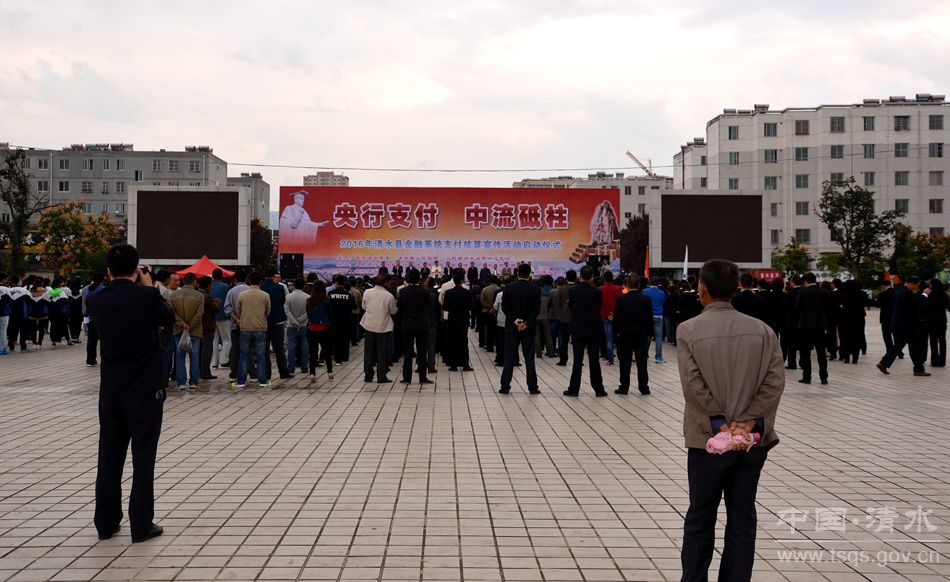 為進(jìn)一步創(chuàng)建良好支付環(huán)境,滿足廣大客戶對(duì)支付結(jié)算業(yè)務(wù)知識(shí)的需求,進(jìn)一步提高支付結(jié)算服務(wù)水平,9月12日,清水縣舉行以“央行支付、中流砥柱”為主題的2016年金融系統(tǒng)支付結(jié)算宣傳活動(dòng)。全縣銀行業(yè)金融機(jī)構(gòu),保險(xiǎn)機(jī)構(gòu),財(cái)政局,天水農(nóng)校等單位干部職工參加了啟動(dòng)儀式。