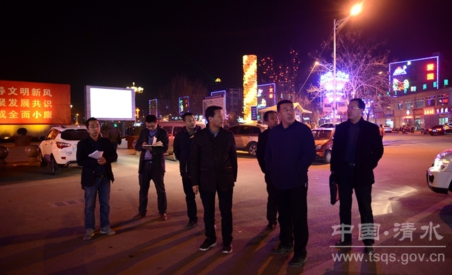 1月19日晚,清水縣政府副縣長(zhǎng)王懷珍,帶領(lǐng)縣委調(diào)研督查室、縣政府督查室、住建局等單位主要負(fù)責(zé)人,沿城區(qū)主干道及牛頭河風(fēng)情線,對(duì)春節(jié)前的城區(qū)亮化及氛圍營(yíng)造工作進(jìn)行了現(xiàn)場(chǎng)檢查,并對(duì)需進(jìn)一步加強(qiáng)和完善的工作進(jìn)行了指導(dǎo)和安排部署。
