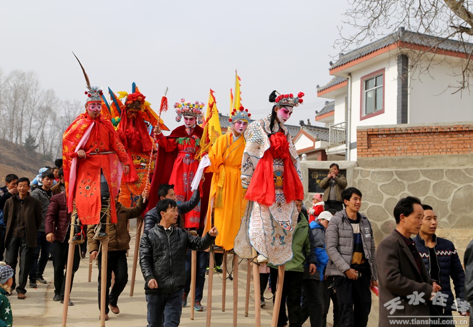 社火是中國漢族民間一種慶祝春節(jié)的傳統(tǒng)慶典狂歡活動。在清水縣,社火表演是每年春節(jié)期間群眾雷打不動的活動,特別是初五、初八、初九、初十、十二、十四、十五、十六等這些日子,群眾都會耍獅子、扭秧歌、劃旱船、唱小調(diào)、踩高蹺、“轉(zhuǎn)”馬社火來慶祝新春佳節(jié)。