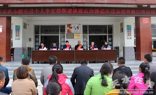 4月7日上午,清水縣舉行無私奉獻先進個人李宏偉和道德模范郭滿福先進事跡宣教口宣講報告會,宣講口干部職和清水五中全體師生共800多人聆聽了報告。
