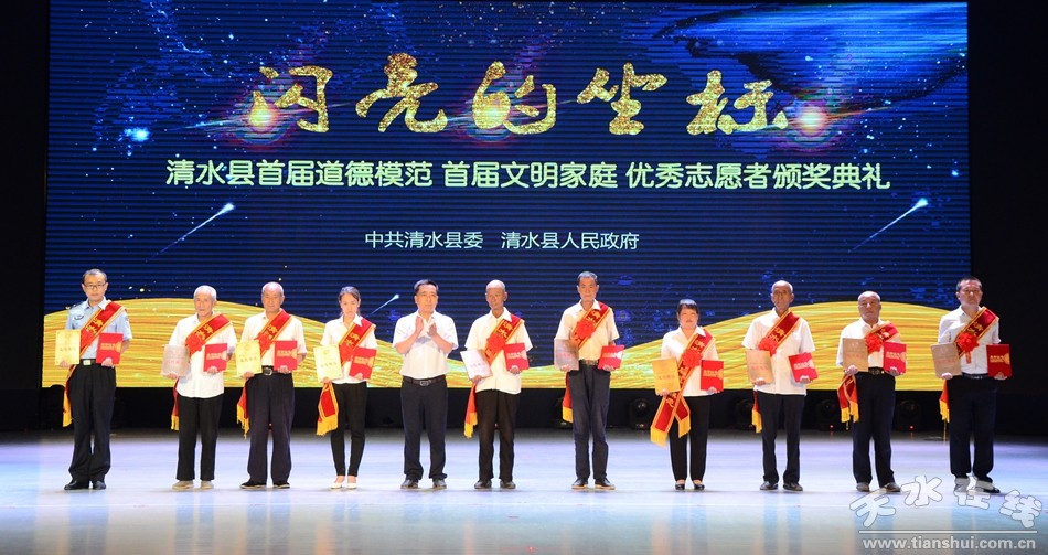 7月7日上午,清水縣清水縣首屆道德模范表彰活動在軒轅大劇院成功舉辦,李宏偉、郭建德、郭滿福、張招琴、王保紅、劉萬海、王玉芳、郭子孝、王振興、納玉榮10人榮獲清水縣首屆道德模范榮譽(yù)稱號。