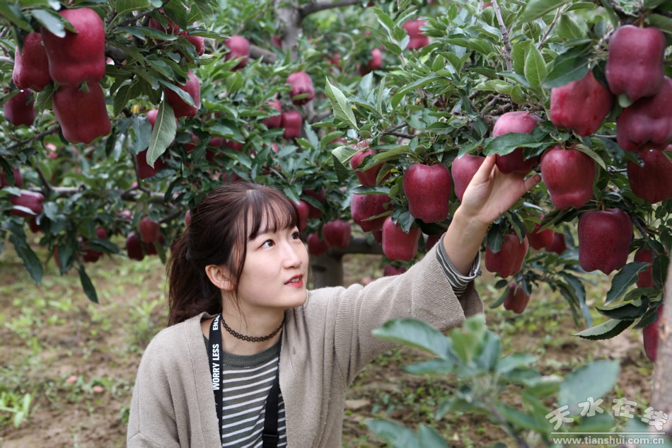 (南家鋪村新秋又著紅妝,花牛大蘋果等你來嘗。)