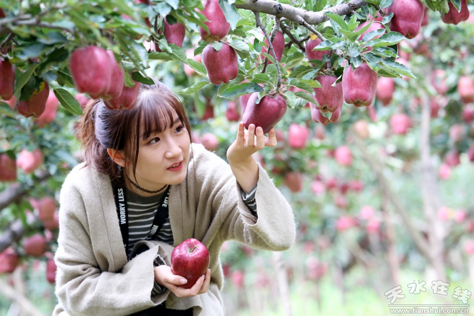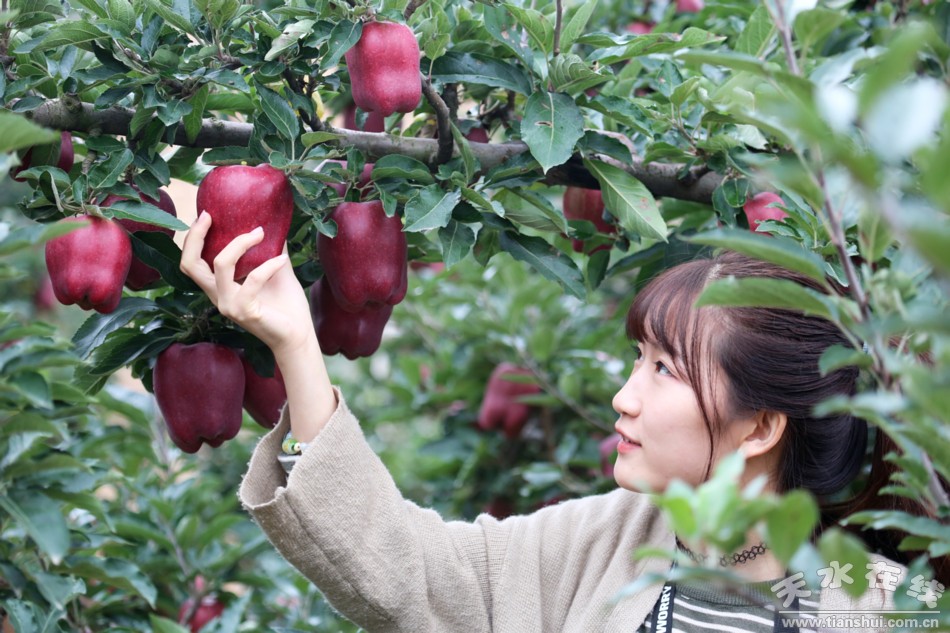 (南家鋪村新秋又著紅妝,花牛大蘋果等你來嘗。)