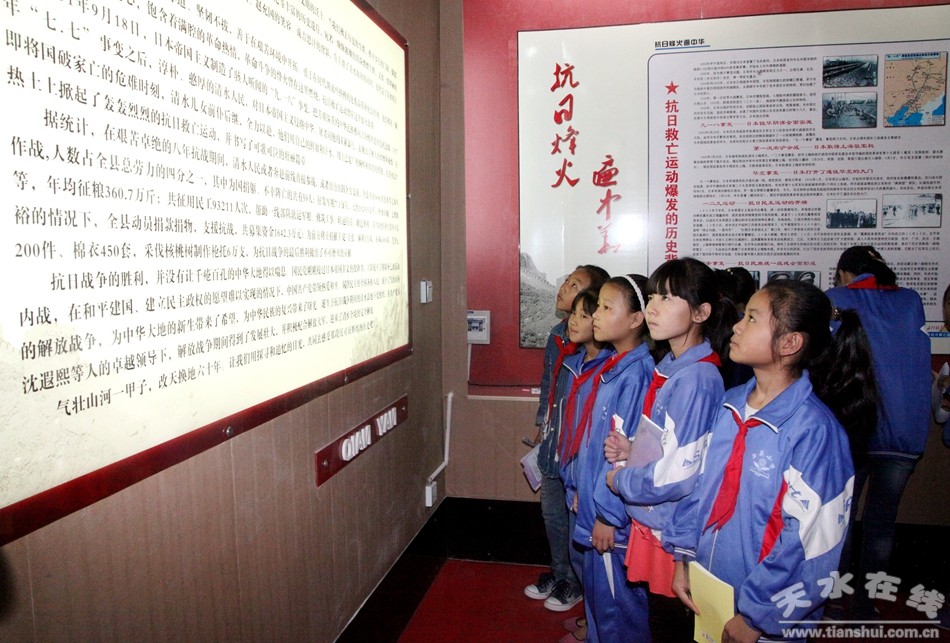 2017年9月18日是“九一八”事變86周年紀(jì)念日。清水縣組織中小學(xué)生參觀縣抗日救亡運(yùn)動(dòng)紀(jì)念館,緬懷抗戰(zhàn)先烈的光輝業(yè)績(jī),弘揚(yáng)愛國(guó)主義精神,以此來(lái)紀(jì)念這個(gè)特殊的日子,讓同學(xué)們?cè)诶斡洑v史、不忘國(guó)恥的同時(shí),更加堅(jiān)定好好學(xué)習(xí)、報(bào)效祖國(guó)的信念。