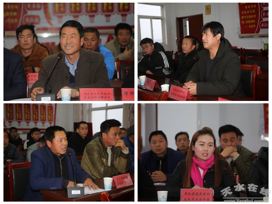 王新強在講話中指出,今年以來,清水縣通過大力推動農(nóng)村“三變”改革工作,深入探索發(fā)展新型農(nóng)民專業(yè)合作組織,創(chuàng)新完善利益聯(lián)結(jié)機制,為新形勢下農(nóng)戶參與并分享現(xiàn)代農(nóng)業(yè)發(fā)展成果,助力脫貧攻堅開辟了一條新途徑。該聯(lián)合社的成立,標志著合作社由“戶戶合作”轉(zhuǎn)變?yōu)楦笠?guī)模、更高層次的“社社聯(lián)合”,由合作社“單個打拼”轉(zhuǎn)變?yōu)椤氨F發(fā)展”,打破了傳統(tǒng)的單一生產(chǎn)經(jīng)營模式,在資金、人才、技術(shù)、服務、營銷等方面的進一步聯(lián)合,形成了優(yōu)勢互補、互幫互助的良好發(fā)展機制,有效解決發(fā)展過程中的規(guī)模小、產(chǎn)業(yè)鏈短、經(jīng)營層次低、競爭能力弱等問題,必將為增強合作社發(fā)展活力和市場競爭力,構(gòu)建更為廣闊的為農(nóng)服務平臺起到良好的帶動示范效應。