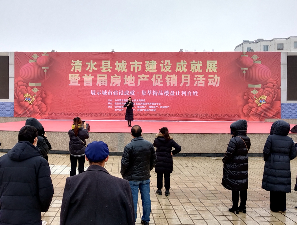 1月11日,清水縣在軒轅廣場(chǎng)舉辦城市建設(shè)成就展暨首屆房地產(chǎn)促銷月活動(dòng)。