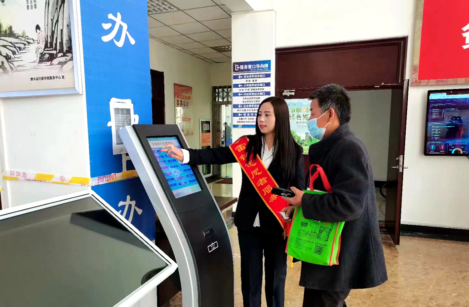 為進(jìn)一步優(yōu)化營(yíng)商環(huán)境,方便辦事群眾,縣政務(wù)服務(wù)中心牽頭把政務(wù)服務(wù)一體化平臺(tái)向縣直各部門和18鄉(xiāng)鎮(zhèn)、260個(gè)村及7個(gè)社區(qū)推廣應(yīng)用,目前全縣各部門、各鄉(xiāng)鎮(zhèn)、村已全部開通運(yùn)行。以為企業(yè)和人民群眾提供標(biāo)準(zhǔn)化、規(guī)范化、便利化的政務(wù)服務(wù)為目標(biāo),以鄉(xiāng)鎮(zhèn)(社區(qū))便民服務(wù)中心、村(社區(qū))便民服務(wù)站建設(shè)提升為抓手,將更多鄉(xiāng)村兩級(jí)可辦的高頻政務(wù)服務(wù)事項(xiàng)下放至鄉(xiāng)村實(shí)施,并安裝政務(wù)服務(wù)自助終端一體機(jī)18臺(tái),打造“15分鐘政務(wù)服務(wù)圈”,實(shí)現(xiàn)高頻便民服務(wù)事項(xiàng)由“最多跑一次”向“就近跑一次”轉(zhuǎn)變。