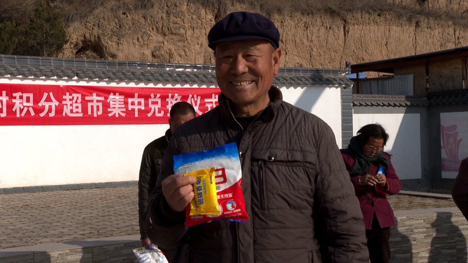 曹溝村村民宋海平說(shuō),“通過(guò)打掃衛(wèi)生、參加各種志愿活動(dòng)賺取積分,用積分對(duì)換物品,我今天兌換了一包洗衣粉和一塊香皂,我特別高興,我要多參與這樣的活動(dòng)!
