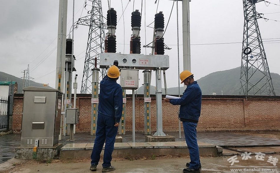 7月24日,國(guó)網(wǎng)清水縣供電公司生技部輸變電運(yùn)檢班班長(zhǎng)陳雪林帶領(lǐng)班員雍智杰在35千伏小泉變開展雨后特巡,全面保障電網(wǎng)安全穩(wěn)定運(yùn)行。