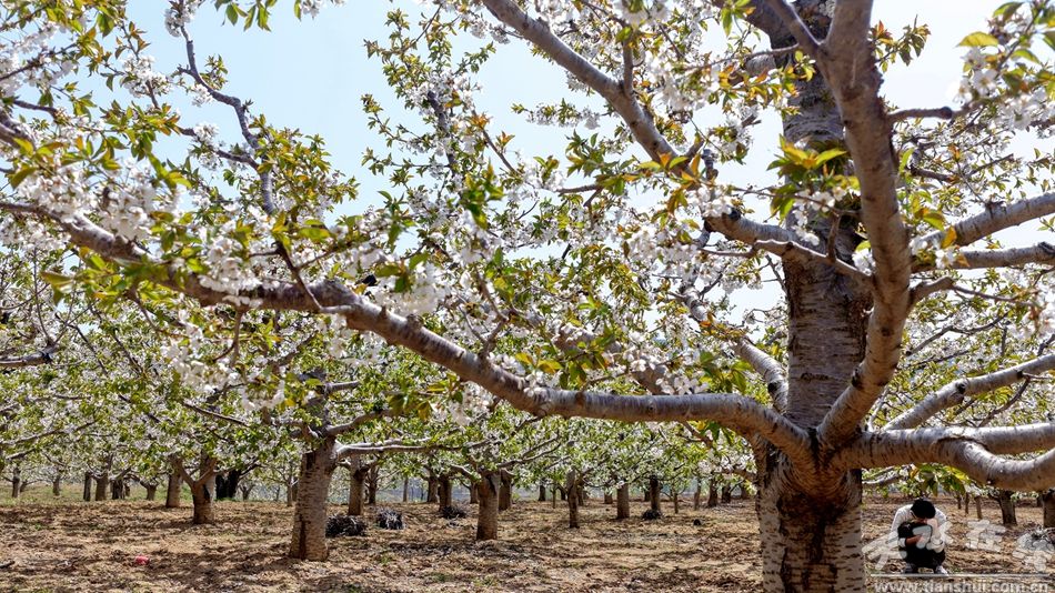 以花為媒,以果為橋。眼下,櫻桃花海美不勝收,果農(nóng)們搶抓花期,進行田間精心管護田間,悉心呵護繁花碩果,期盼著今年迎來更好的收成。