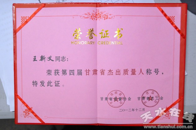 星火機(jī)床公司榮獲2012年甘肅省實(shí)施卓越績效先進(jìn)企業(yè),星火機(jī)床公司檢查計(jì)量處處長王新義獲第四屆“甘肅省杰出質(zhì)量人”稱號(hào)。