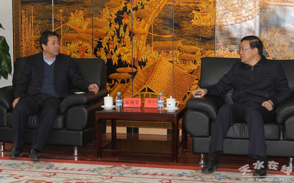 (甘肅盛達(dá)集團(tuán)股份有限公司董事長(總裁)趙滿堂(左)與中國長城資產(chǎn)管理公司總裁鄭萬春親切友好會(huì)談)