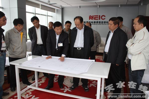 姚國慶一行先后查看了“國家高低壓電器質(zhì)量監(jiān)督檢驗(yàn)中心”項(xiàng)目建設(shè)以及運(yùn)行情況,李平院長還就該院“電工產(chǎn)品綜合檢測試驗(yàn)研究基地”項(xiàng)目建設(shè)規(guī)劃情況作了匯報(bào)。