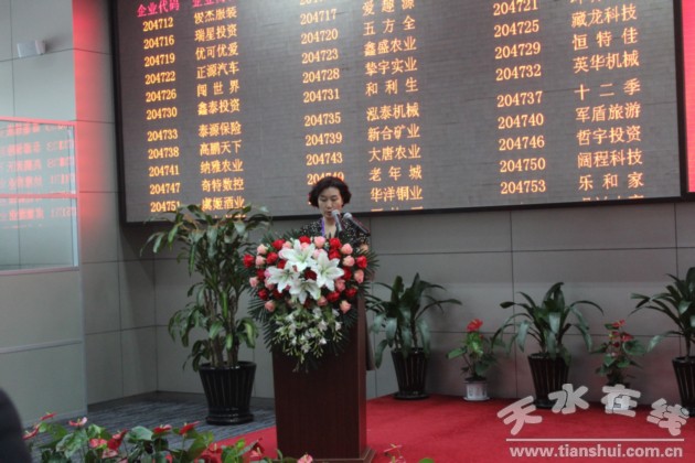 左沁芳副主席說:天寶文化此次能順利登陸上海股權(quán)托管交易中心,積極響應(yīng)了國家號(hào)召,實(shí)現(xiàn)了天水市中小企業(yè)在上海股權(quán)托管交易中心掛牌企業(yè)‘零’的突破。希望天寶文化以此為契機(jī),謀求更大的發(fā)展,努力為天水市文化產(chǎn)業(yè)的大發(fā)展做出積極貢獻(xiàn)。