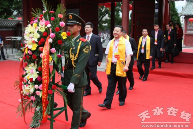 樂(lè)舞告祭后,甘肅省信用聯(lián)社理事長(zhǎng)雷志強(qiáng)隨馬飚、王三運(yùn)、蔣孝嚴(yán)、劉偉平、馮健身、歐陽(yáng)堅(jiān)等國(guó)家和省市領(lǐng)導(dǎo)人,緩步走進(jìn)伏羲廟,敬獻(xiàn)花籃、瞻仰伏羲圣像,公祭人文始祖,共同祈福中華繁榮昌盛。