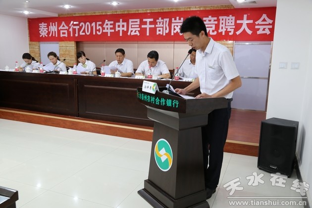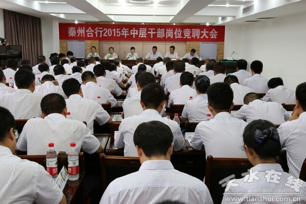 為貫徹落實(shí)中共中央《推進(jìn)領(lǐng)導(dǎo)干部能上能下若干規(guī)定》和省聯(lián)社“人才強(qiáng)社”戰(zhàn)略,實(shí)現(xiàn)人力資源合理配置,拓寬干部任用機(jī)制和選人用人機(jī)制,7月31日,秦州合行召開(kāi)2015年中層干部競(jìng)聘大會(huì)。合行領(lǐng)導(dǎo)班子成員、來(lái)自機(jī)關(guān)和基層的27名競(jìng)聘者以及員工代表共計(jì)90余人參加了會(huì)議。