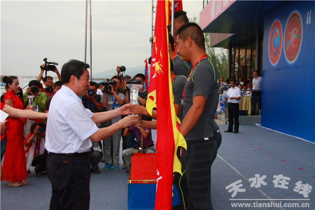 8月8日,從麥積區(qū)翠湖舉行的“百花小鎮(zhèn)杯”2015年中國(guó)龍舟公開賽(甘肅·天水·麥積站)現(xiàn)場(chǎng)傳來(lái)消息,天水鍛壓龍舟隊(duì)榮獲天水本地組綜合成績(jī)第三名的好成績(jī),甘肅省政協(xié)副主席張津梁、天水市委副書記市長(zhǎng)楊維俊為他們頒發(fā)了獎(jiǎng)杯和榮譽(yù)證書,并獲得1.5萬(wàn)元的獎(jiǎng)金。天水鍛壓龍舟隊(duì)同時(shí)在200米直道賽、500米直道賽單項(xiàng)決賽中分別獲得第四名和第三名的好成績(jī)。