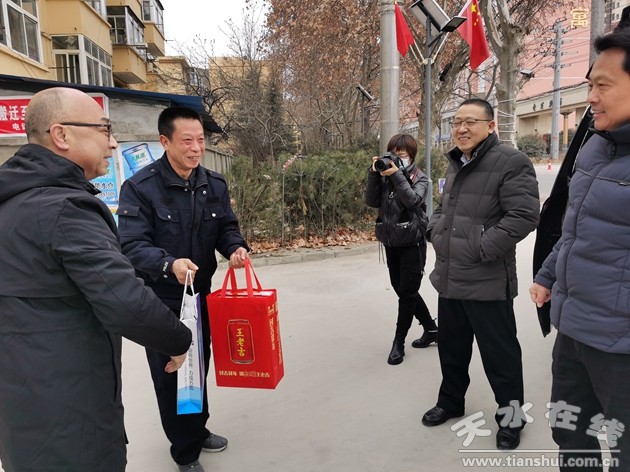 “新年好,大家辛苦了!痹诶蠌S區(qū)、工業(yè)園區(qū)、附件公司、家屬區(qū)及單身樓門衛(wèi),蔣俊一行與值班人員親切交流,叮囑大家注意保暖防寒,仔細詢問節(jié)日期間的工作情況,對他們履行崗位職責(zé),維護公司安全的辛勤付出表示感謝。