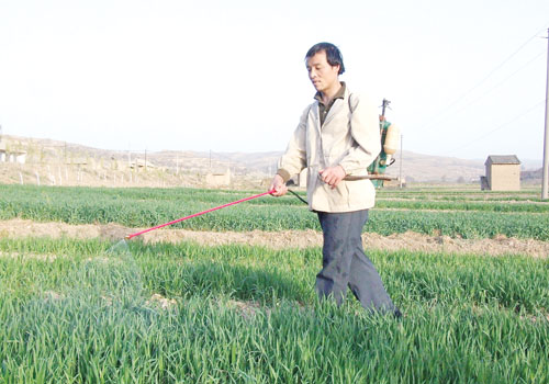 近日,秦州區(qū)汪川鎮(zhèn)的閆三娃正在自家麥田里噴灑預(yù)防條銹病的農(nóng)藥。我市是小麥條銹病高發(fā)區(qū),許多農(nóng)民及早行動(dòng),噴灑農(nóng)藥,以確保小麥豐收。(記者 郭德峰 成雄 攝)