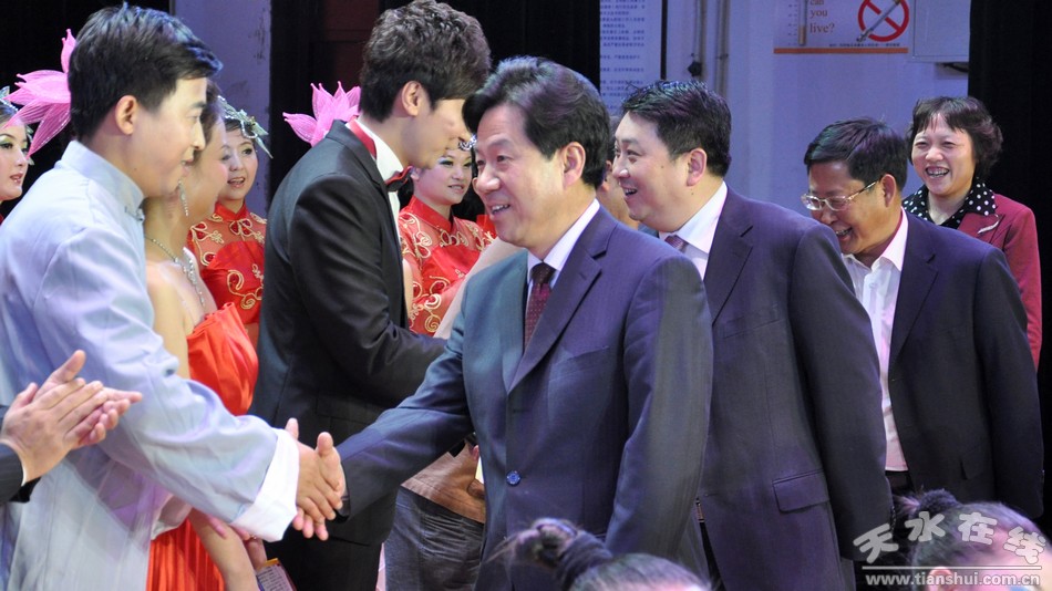 一系列主題鮮明的精彩節(jié)目將晚會不斷推向高潮,贏得在場觀眾陣陣掌聲。最后,張明泰等領導同志與全體演職人員一一握手,并合影留念。