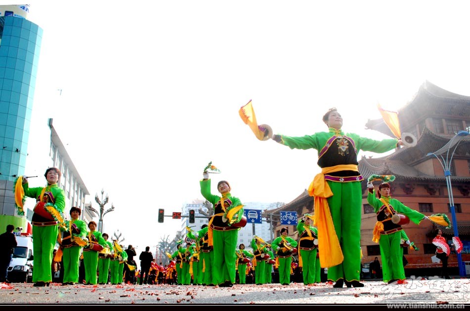 2月21日,農(nóng)歷正月十二,年味正酣的古城秦州人頭攢動(dòng),市民們扶老攜幼,早早地來到主要街道,建設(shè)路、民主路沿線,龍城廣場(chǎng)四周成為笑聲的世界,歡騰的海洋。上午九時(shí)三十分,由秦州區(qū)委、秦州區(qū)政府主辦的2013年春節(jié)民間民俗藝術(shù)展演正式拉開帷幕。在今年的社火表演中,秦州區(qū)本著歡樂、節(jié)儉、喜慶、祥和的原則,取消了觀禮臺(tái),減少了煙花爆竹燃放。