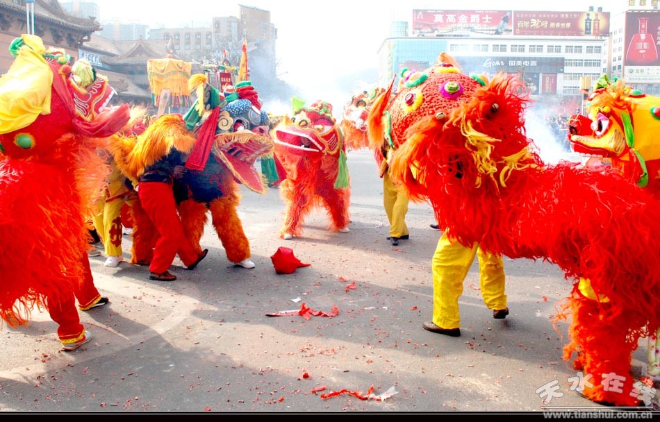 。ㄇ刂輩^(qū)外宣辦 辛志鋒 攝影:天水在線)熱鬧的鑼鼓敲起來,歡快的小曲兒唱起來,吉祥的彩龍舞起來,喜慶的金獅耍起來……