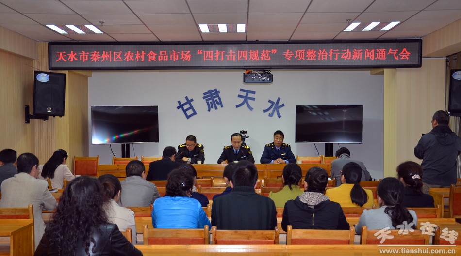 10月16日,秦州區(qū)農(nóng)村食品市場“四打擊四規(guī)范”專項(xiàng)整治行動(dòng)新聞通氣會(huì)在秦州區(qū)食品藥品監(jiān)督管理局舉行,該區(qū)即日起開展為期3個(gè)月的農(nóng)村食品市場專項(xiàng)整治行動(dòng)。