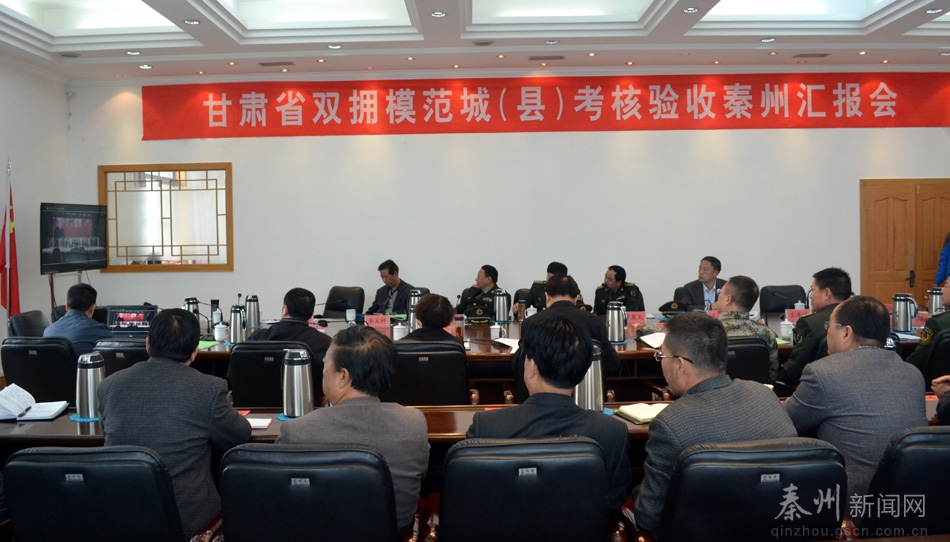在召開(kāi)的匯報(bào)會(huì)上,考核驗(yàn)收組對(duì)秦州區(qū)雙擁工作中取得的成績(jī)給予了充分肯定,認(rèn)為秦州區(qū)委、區(qū)政府按照“黨委議軍、書(shū)記掛帥、軍地聯(lián)動(dòng)、部門(mén)協(xié)同、社會(huì)參與、全民共建”的要求,狠抓雙擁創(chuàng)建組織體系建設(shè),雙擁創(chuàng)建宣傳氛圍濃厚,國(guó)防教育開(kāi)展扎實(shí)有效,形成了黨政軍三位一體、區(qū)鄉(xiāng)(街)村(社區(qū))三級(jí)聯(lián)動(dòng)的組織機(jī)構(gòu)體系,工作成效十分明顯。考核驗(yàn)收組希望秦州區(qū)要繼續(xù)保持和發(fā)揚(yáng)好擁軍優(yōu)屬、擁政愛(ài)民的優(yōu)良傳統(tǒng),爭(zhēng)取在雙擁創(chuàng)建工作中創(chuàng)新出更好的機(jī)制,挖掘出更多的亮點(diǎn)和特色;要繼續(xù)保持好創(chuàng)建省級(jí)雙擁模范城的熱情,堅(jiān)持把雙擁工作與經(jīng)濟(jì)建設(shè)以及社會(huì)各項(xiàng)事業(yè)深度融合發(fā)展相結(jié)合,與雙聯(lián)活動(dòng)、黨的群眾路線教育實(shí)踐活動(dòng)相結(jié)合,激發(fā)參軍助軍的熱情,進(jìn)一步營(yíng)造濃厚的雙擁工作氛圍;要繼續(xù)全面深入開(kāi)展全民國(guó)防教育,提高全民國(guó)防意識(shí),駐區(qū)部隊(duì)要積極參與地方建設(shè),為秦州區(qū)經(jīng)濟(jì)社會(huì)發(fā)展保駕護(hù)航,推動(dòng)軍民深度融合發(fā)展,推動(dòng)全區(qū)雙擁工作取得新的更大的成績(jī)。