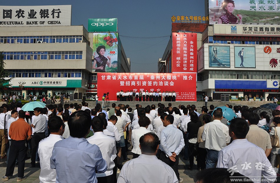 5月27日上午,天水市首屆“秦州大櫻桃”推介暨招商引資簽約洽談會開幕式在龍城廣場舉行。此次洽談會,旨在進一步提升“秦州大櫻桃”品牌知名度和市場競爭力,廣泛宣傳推介“秦州大櫻桃”品牌,構(gòu)建和擴大營銷網(wǎng)絡(luò)。經(jīng)過積極洽談、協(xié)商對接,開幕式上共簽約項目11個,總投資13.5億元。