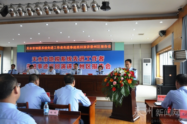 (秦州地稅局 王利勇)“無論在哪個崗位上,始終懷著一顆感恩的心,時刻牢記所擔負的責任,刻苦鉆研,嚴于律己,時刻警醒自己要對黨忠誠、干凈做人、勇于擔當!边@是一名秦州地稅人向社會弘揚正能量道出的心聲。6月2日,天水市地稅局黨組成員、副局長,系統(tǒng)工會主席張學成帶領(lǐng)天水市地稅系統(tǒng)先進工作者事跡宣講團在秦州地稅巡回宣講,秦州區(qū)委常委、組織部長王永剛應(yīng)邀出席會議,區(qū)委常委、副區(qū)長張仲牛出席會議并作了重要講話,會議由市局黨群辦負責人常鈺鋒主持,區(qū)局黨組成員、副局長柯莉介紹宣講成員情況,秦州區(qū)地稅局黨組書記、局長呂見平致歡迎詞,宣講團成員及秦州地稅全體職工共計153人參加會議。