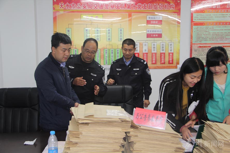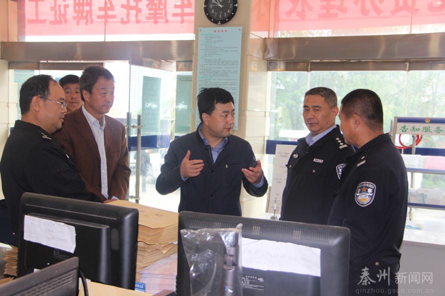 9月28日上午,秦州區(qū)政法委書記趙虎生,安監(jiān)局長杜林來到秦州公安分局郊區(qū)交警大隊,就免費辦理農(nóng)用三輪車摩托車牌證工作進(jìn)行督導(dǎo)檢查。