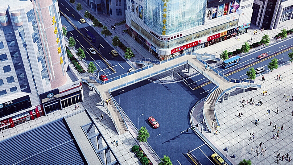 為有效緩解市中心龍城廣場周邊交通壓力,解決大眾中路、解放路過往車輛和行人通行無序爭道的現(xiàn)狀,消除交通安全隱患。今年,秦州區(qū)決定實施大眾中路人行天橋建設工程。天橋位于龍城廣場東南角,橫跨大眾中路及解放路呈“L”型布置,主橋跨凈空高度4.5M,橋梁上部結(jié)構(gòu)采用鋼箱梁,主橋全長62.3 M,橋梁寬度4.3 M,梯道全長104.4 M,寬度3 M。主橋下部結(jié)構(gòu)采用板式花瓶墩,墩厚60CM,基礎(chǔ)采用承臺+雙排樁基,樁基直徑100CM。橋面鋪裝采用15MM聚氨酯合成橡膠橋面,護欄采用玻璃護欄。