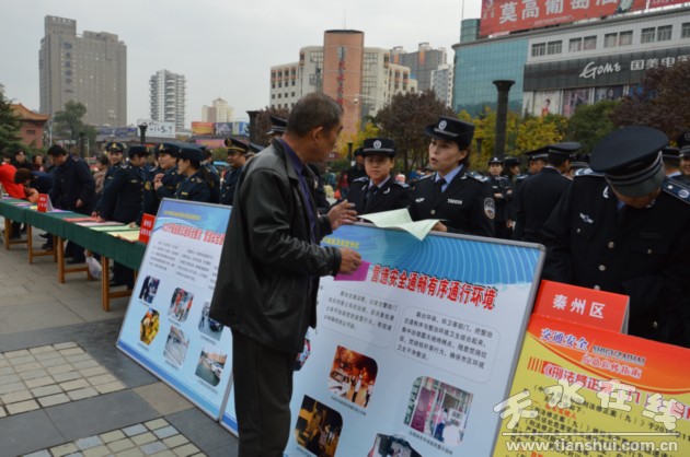 11月10日,天水市道路交通秩序綜合整治工作集中宣傳活動(dòng)在市中心龍城廣場(chǎng)舉行。秦州區(qū)執(zhí)法局抽調(diào)業(yè)務(wù)骨干20人組成宣傳小組參加了當(dāng)日的宣傳活動(dòng),通過設(shè)置宣傳展板、散發(fā)傳單等多種宣傳形式,向群眾普及城管法律法規(guī),解答市民此次道路交通秩序綜合整治工作相關(guān)問題。