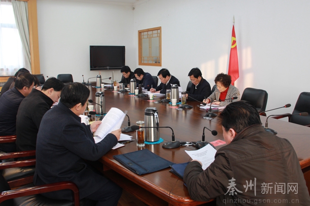 會議研究審定《秦州區(qū)關(guān)于加強社會治安防控體系建設(shè)的實施方案》和《關(guān)于在全區(qū)基層推行網(wǎng)格化服務(wù)管理的實施方案》;聽取審定2016年全區(qū)重點建設(shè)項目計劃匯報;聽取區(qū)人大及其常委會機構(gòu)調(diào)整有關(guān)事宜和關(guān)于召開區(qū)委人大工作會議籌備情況的匯報;傳達省委精準(zhǔn)扶貧“853”安排會議精神,研究貫徹意見。